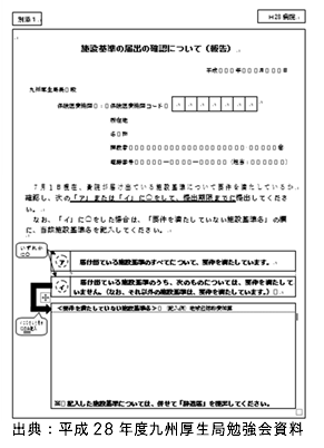 自主点検でどうだったのか、という右のような報告書を事前に出すことになりました。基準を満たさない状況であれば、自主的に取り下げをすることになります。