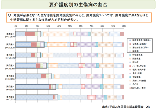そして、高齢者の要介護認定を受けているかたの、3~4割程度の方がこの生活習慣病の治療を受けています。
